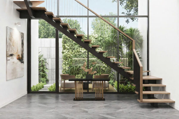 Vị trí lắp đặt cầu thang cũng là một yếu tố quan trọng cần xem xét. Ví dụ, cầu thang đặt ngoài trời sẽ cần khả năng chống ăn mòn cao hơn so với cầu thang