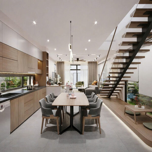 Kiểu dáng cầu thang ảnh hưởng rất lớn đến tổng thể thiết kế nội thất. Vì vậy, cần chọn kiểu dáng phù hợp với phong cách kiến trúc của ngôi nhà.