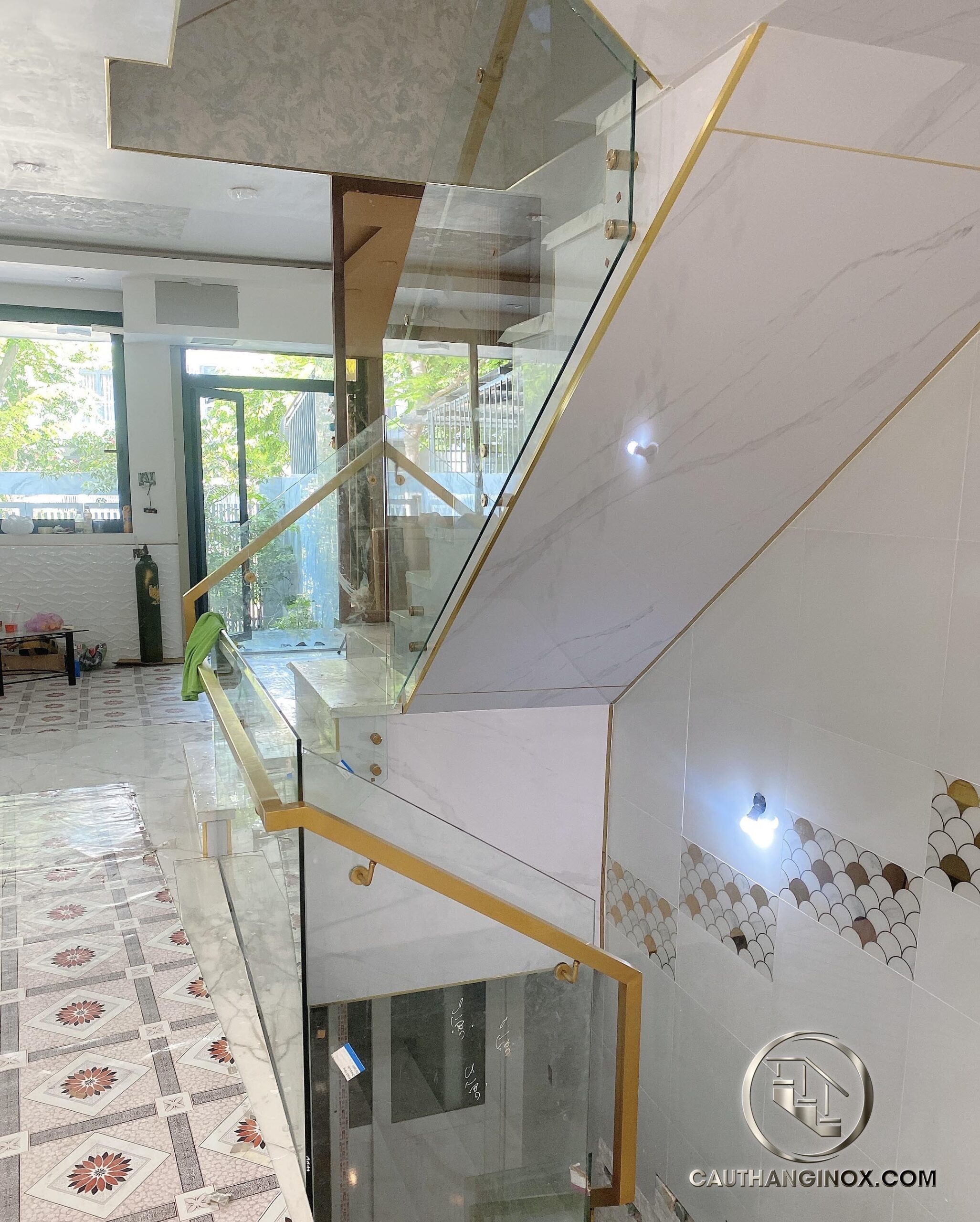 Công Trình Cầu Thang Inox Kính Mạ Vàng Nhà Phố