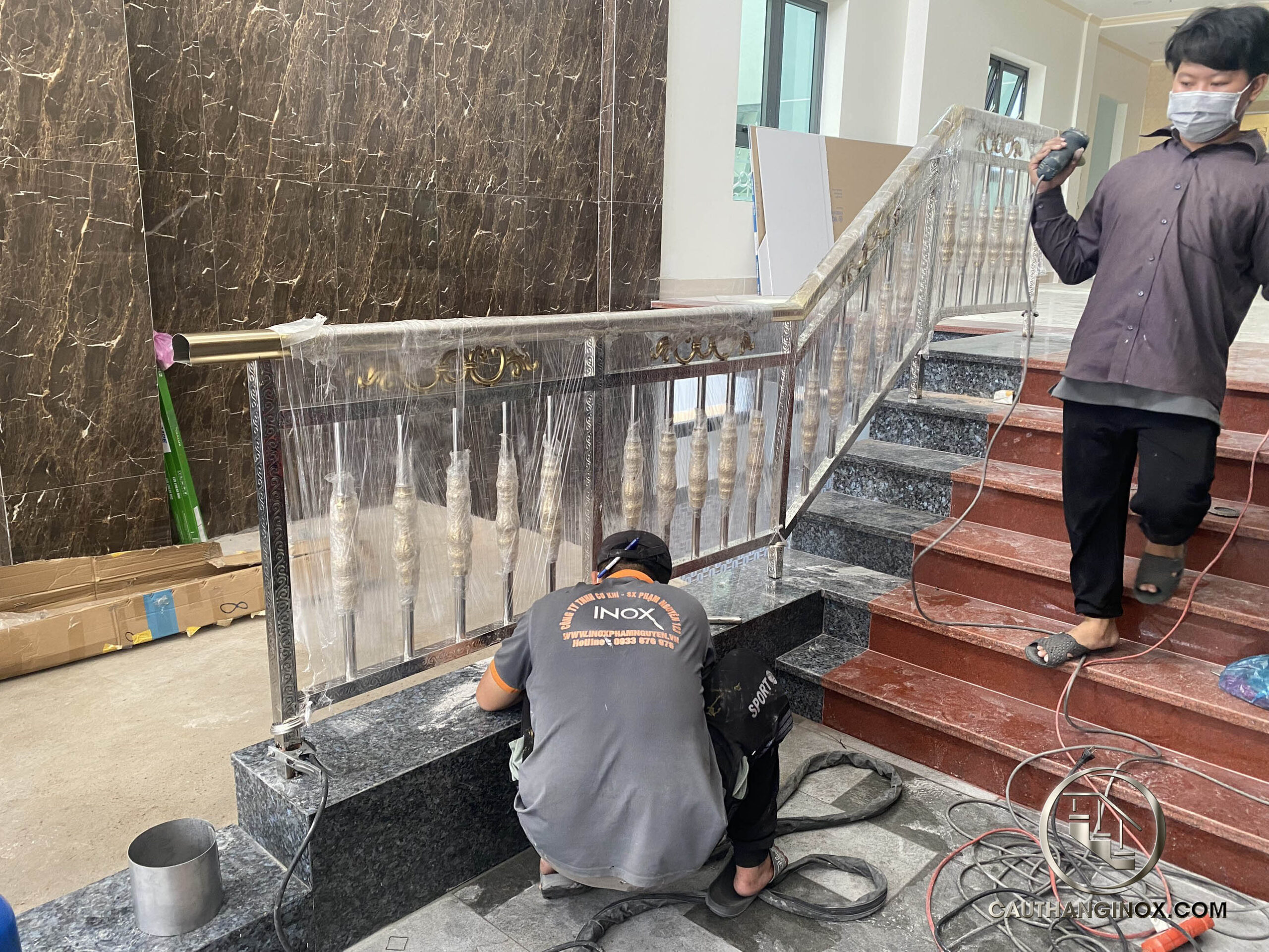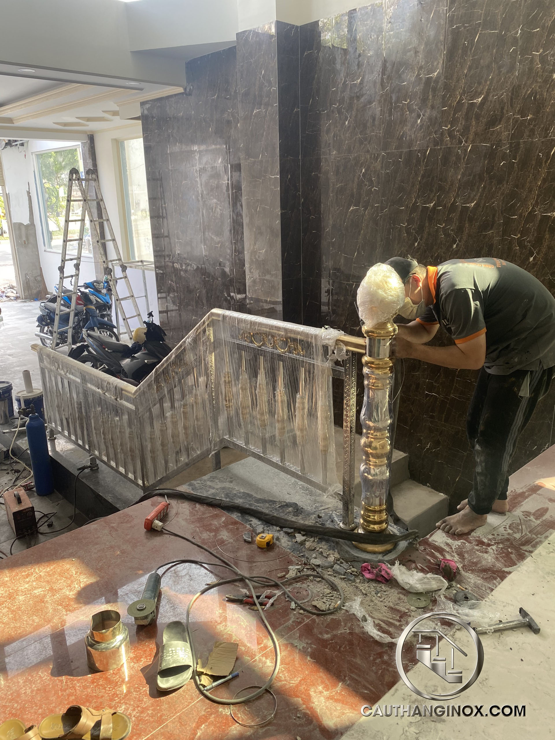 Ứng dụng lắp đặt: Cầu thang inox vàng