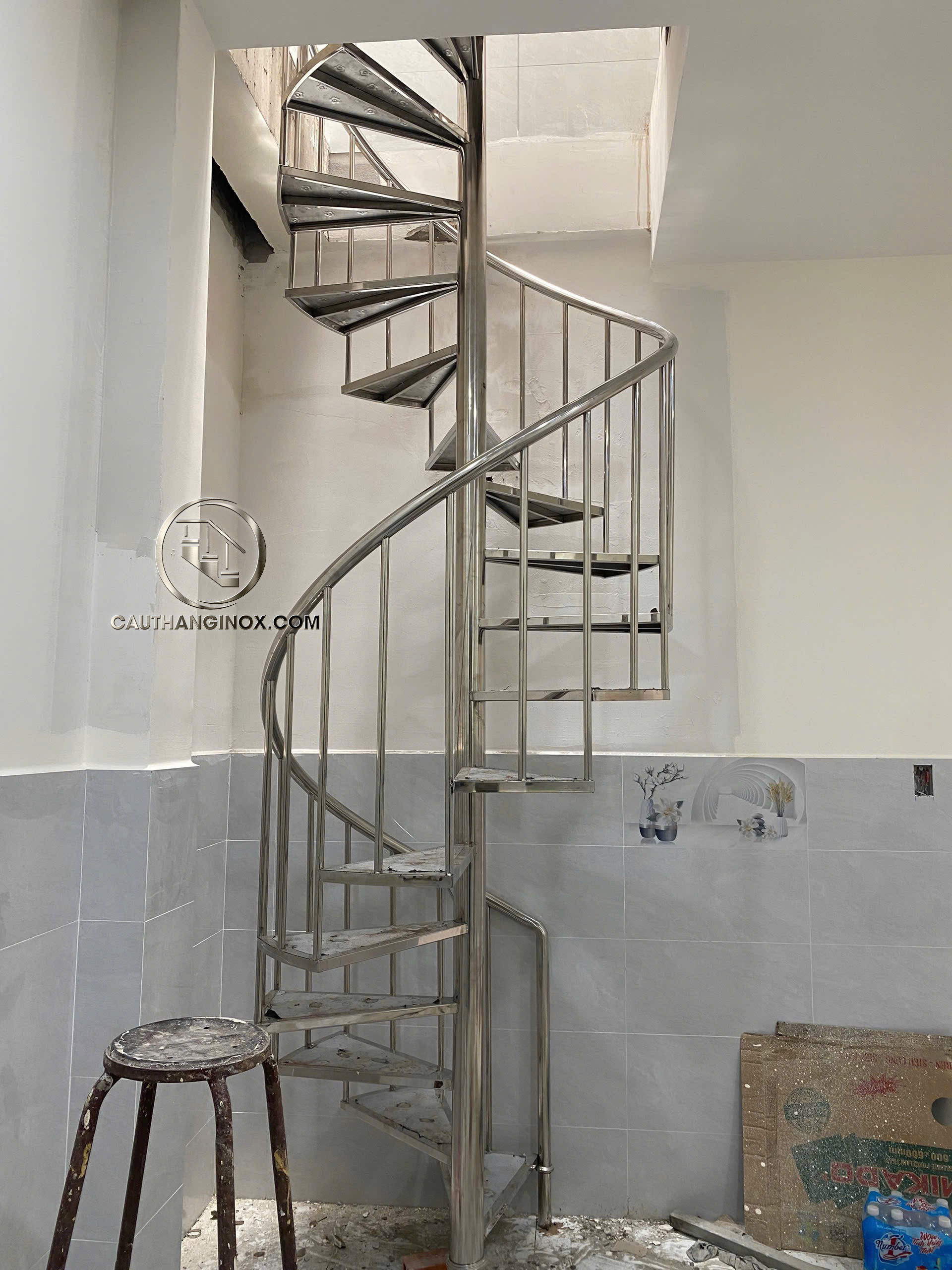 Cầu thang inox xoắn ốc mang đến vẻ đẹp hiện đại và tiết kiệm diện tích với đường xoáy mềm mại đầy ấn tượng. Chất liệu inox sáng bóng, bền chắc, không gỉ giúp công trình nổi bật và sang trọng hơn, phù hợp cho cả nhà ở và không gian kinh doanh.